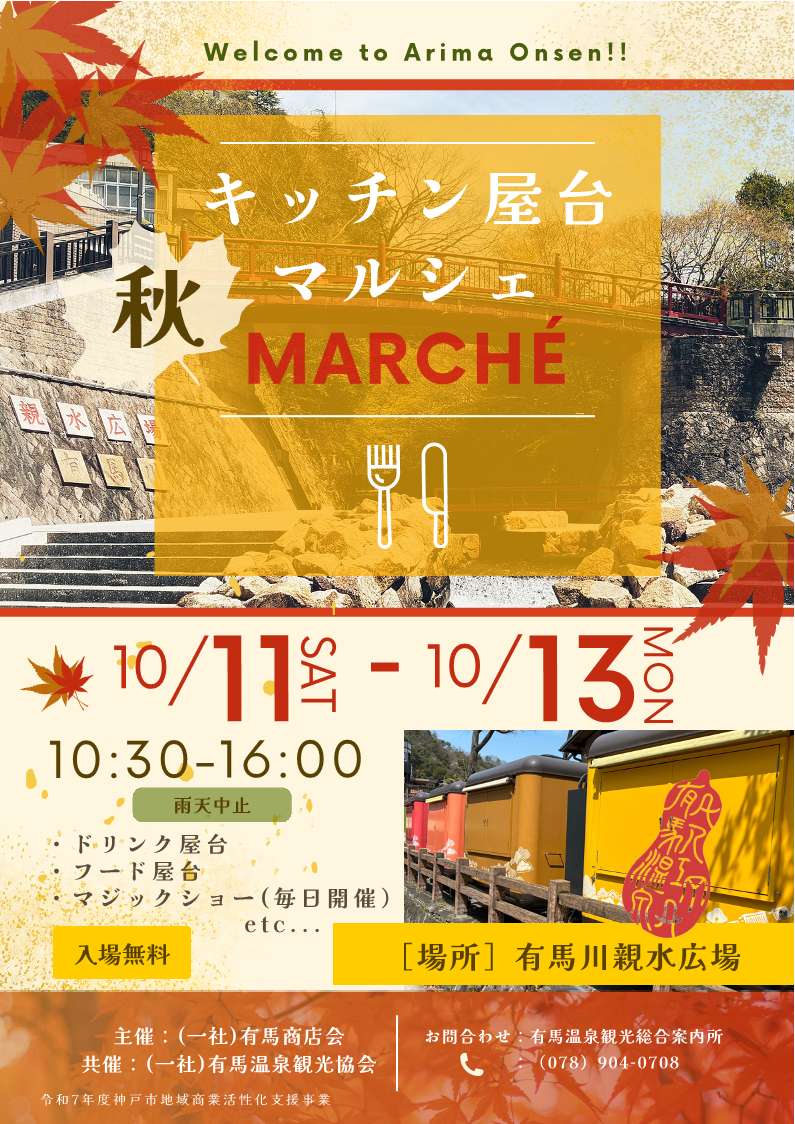 有馬川親水広場に、秋のグルメ屋台が出店します。